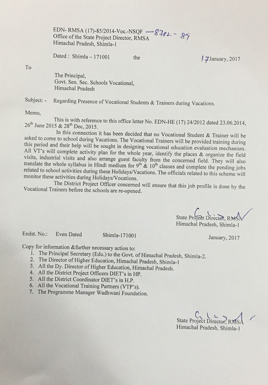 | Regarding Presence of Vocational Students & Trainers during Vacations |